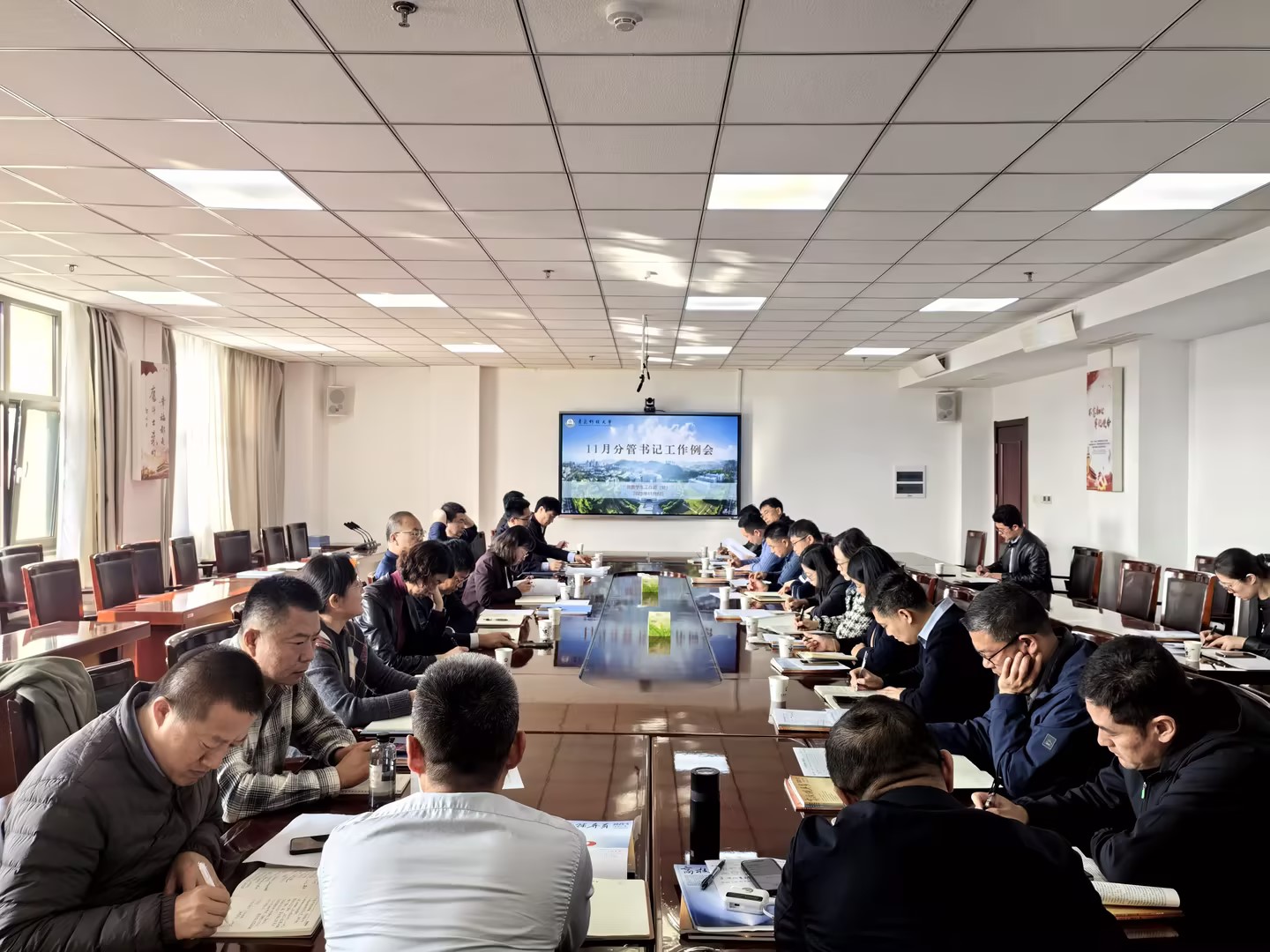 11月6日,学校11月份分管学生工作书记月度例会在崂山校区综合服务楼3015会议室召开。会议就进一步强化学风建设、就业工作、宿舍建设和安全稳定等工作进行部署。党委常委、副校长丁林出席会议并讲话。党委学生工作部部长王丽主持会议。
