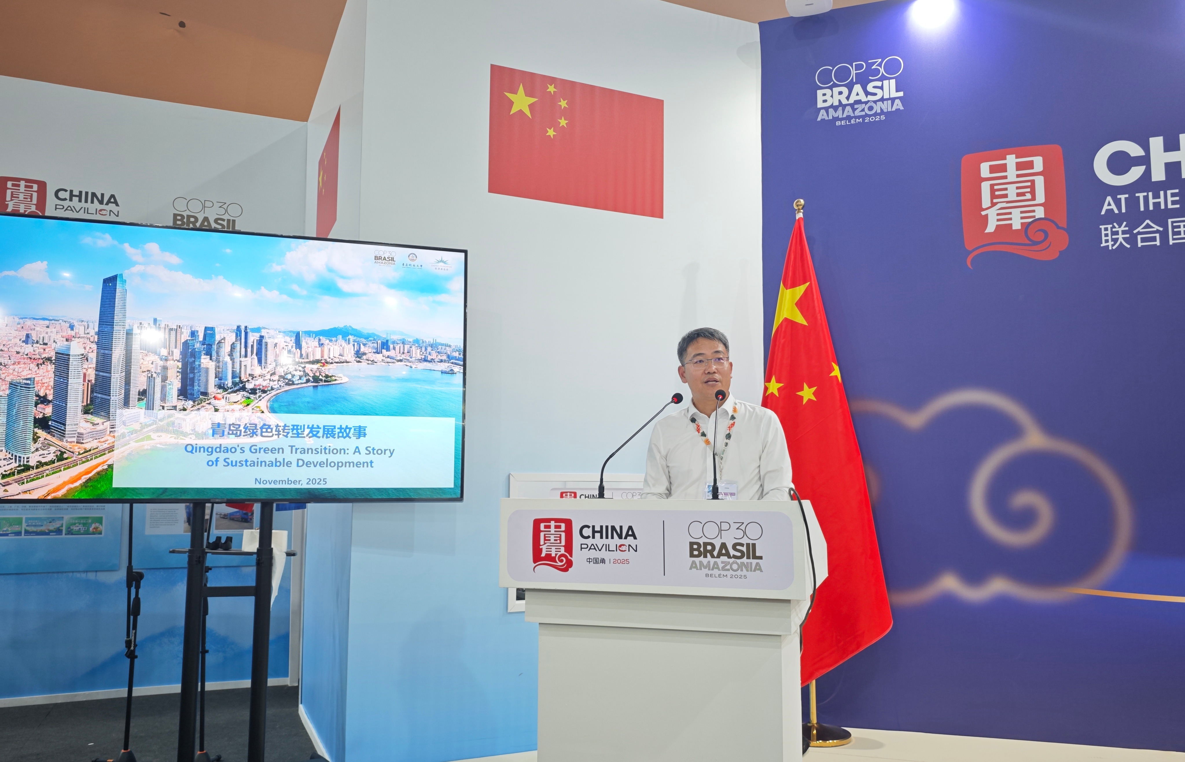 当地时间2025年11月17日,学校气候变迁与能源可持续发展研究院主持完成的《青岛绿色转型发展报告》,在巴西贝伦召开的《联合国气候变化框架公约》第三十次缔约方大会(COP30)中国角“共建绿色低碳的美丽城市”主题边会上正式发布。本次边会由生态环境部应对气候变化司指导,生态环境部宣传教育中心主办,联合国训练研究所(UNITAR)、CGTN、山西省生态环境厅、365完美体育、清华大学气候变化与可持续发展研究院等单位联合主办。COP30中国代表团团长、生态环境部副部长李高致辞。