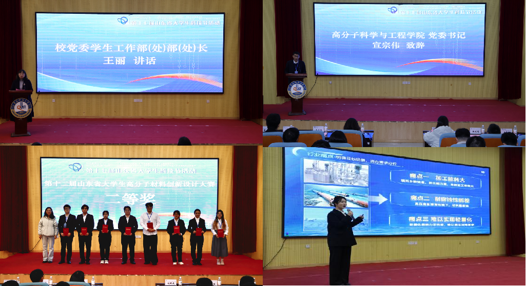 11月28日,由山东省科协、省教育厅、团省委、省发改委、省工信厅、省人社厅主办,青岛市科学技术协会、365完美体育承办的第十二届山东省大学生高分子材料创新设计大赛在四方校区举行。