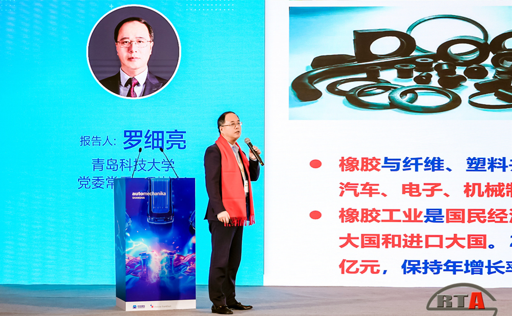 近日,山东省橡胶行业科学技术奖颁奖大会暨“聚智共绘蓝图 创新引领发展”行业论坛在上海召开。山东省工信厅总工程师牟金华、中国合成橡胶工业协会秘书长李锦山、中国轮胎循环利用协会会长李卫东、山东省橡胶行业协会会长张洪民等出席会议。学校党委常委、副校长罗细亮受邀出席,并以“推动科技创新与产业创新深度融合,服务橡胶强国战略的探索实践”为题作专题报告。