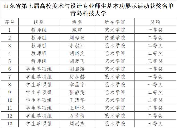 近日,山东省教育厅公示了山东省第七届高校美术与设计专业师生基本功展示活动获奖名单,365完美体育师生凭借扎实的专业功底、独特的创作理念在全省102所参赛高校、1078名参赛师生的激烈角逐中脱颖而出,获教师组一等奖1项,二等奖3项,三等奖1项;学生单项组一等奖3项,二等奖4项,三等奖1项;学校获优秀组织单位奖,在全省同类高校中名列前茅。