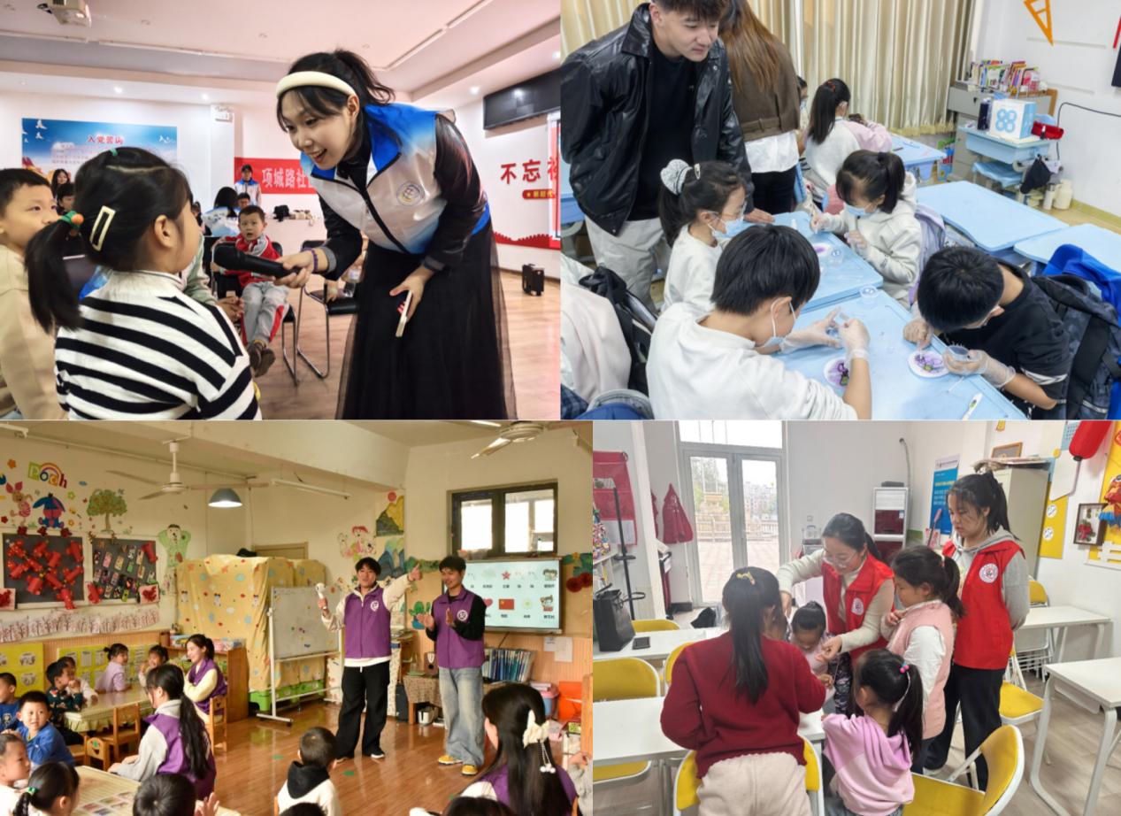 在助力儿童教育方面,各学院发挥专业优势打造特色课堂,为青少年成长保驾护航。信息学院“青衿志愿服务”在科大悦苑社区开设“4点半”编程课堂,实现人才培养赋能社会发展;机电工程学院“青锋”1+N+X志愿服务项目开展科技研学、科普实验;艺术学院依托“艺术姐姐”“艺路同行”社区实践品牌开展手语实践、美育手工等艺术疗愈类美育活动,让艺术服务触达更多群体;法学院“微普法”实践团将心理学知识与趣味游戏结合,开展“心灵点灯赋能成长”活动,同时通过模拟法庭、情景再现等形式普及法律知识;外国语学院打造“趣味英语角”品牌,以互动式教学提升青少年英语口语能力;化学院“小分子”志愿服务队则为困境儿童提供课后辅导与心理关怀,让志愿服务与社区发展双向发力。