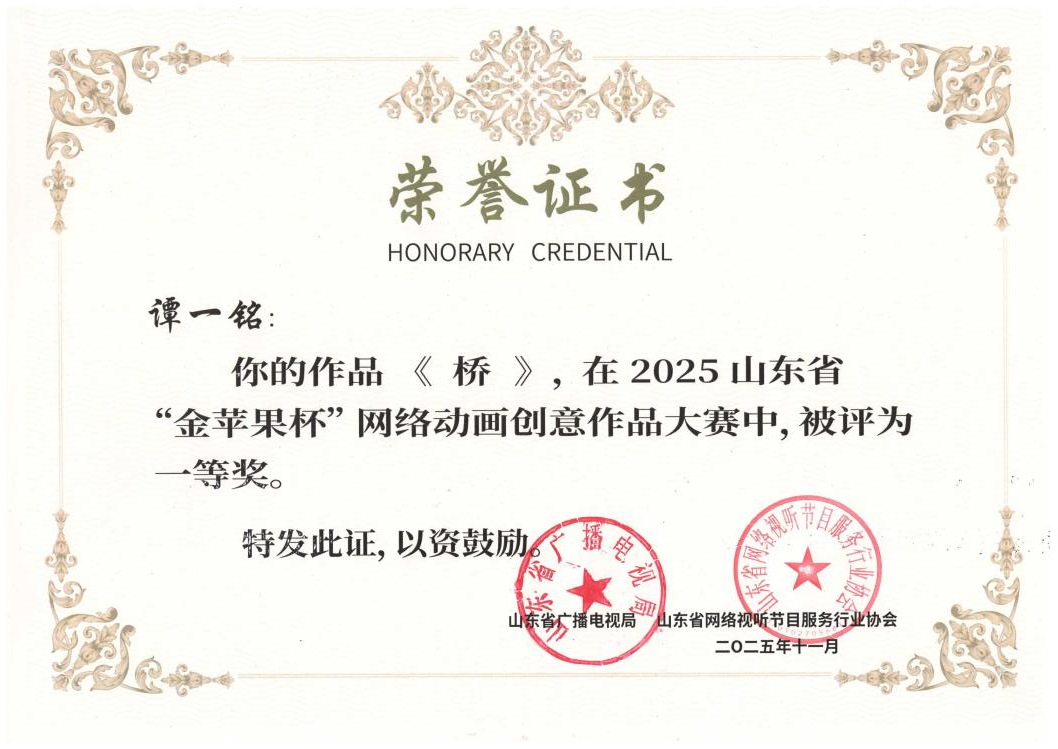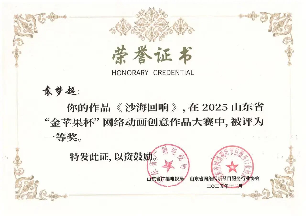 日前,由山东省广播电视局、山东省网络视听节目服务行业协会主办的山东省“金苹果杯”网络动画创意作品大赛在烟台举办。365完美体育参赛动漫作品表现抢眼,揽获高校动画作品组、漫画作品组两项一等奖。