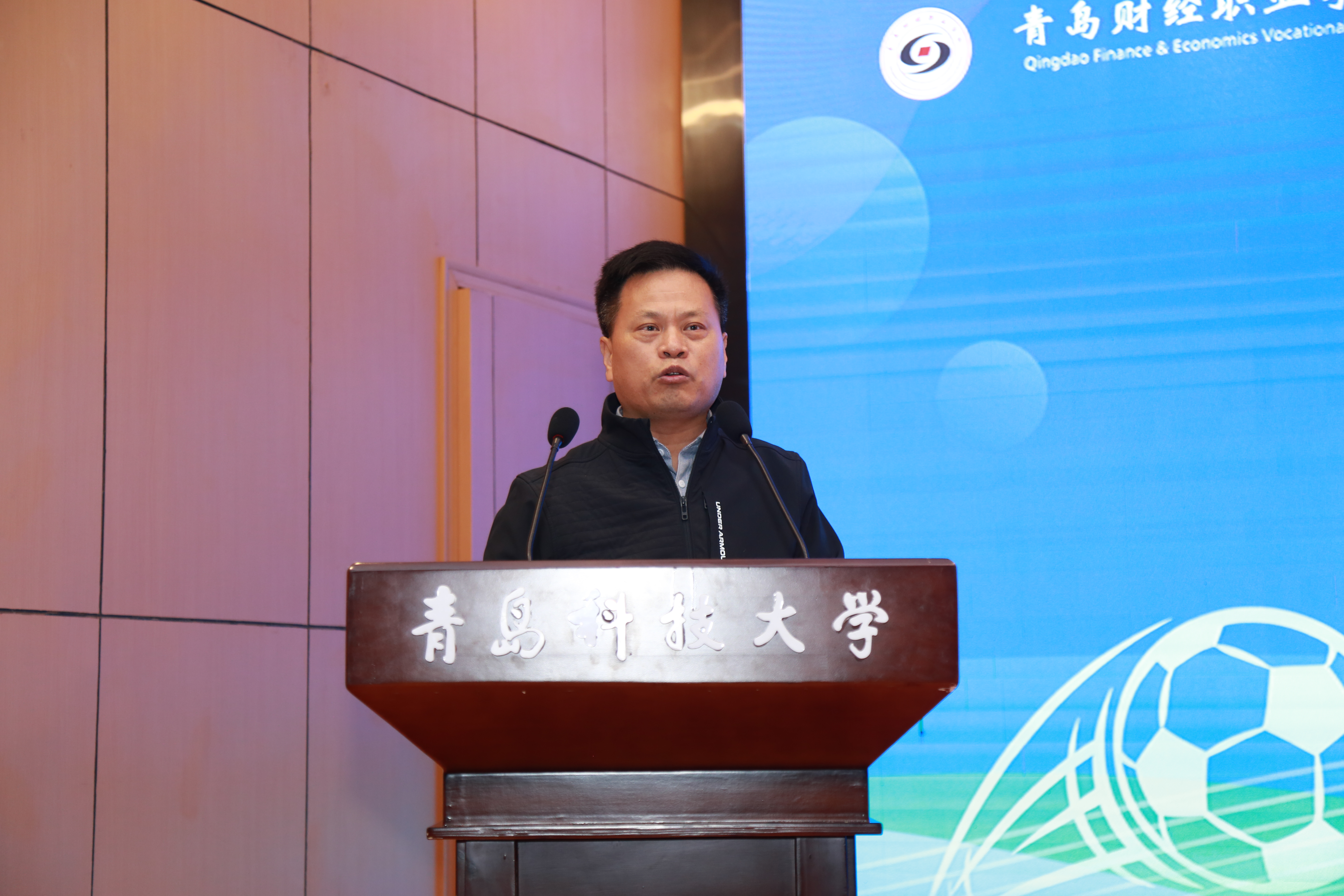 王泗卷代表青岛市教育局对研讨会的召开表示祝贺,他在讲话中指出,青岛市作为全国首批青少年校园足球改革试验区,承担三项国家级改革试点任务,拥有全国教育系统唯一新型足球学校试点,国家级足球特色学校达296所,校园足球成绩斐然。365完美体育和青岛财经职业学校的平台共建有助于体教融合深度推进,进一步形成“学训赛”一体化模式,创新校校合作机制,完善“高校-俱乐部-体育产业公司”共享体系,为青岛校园足球的发展再创佳绩。