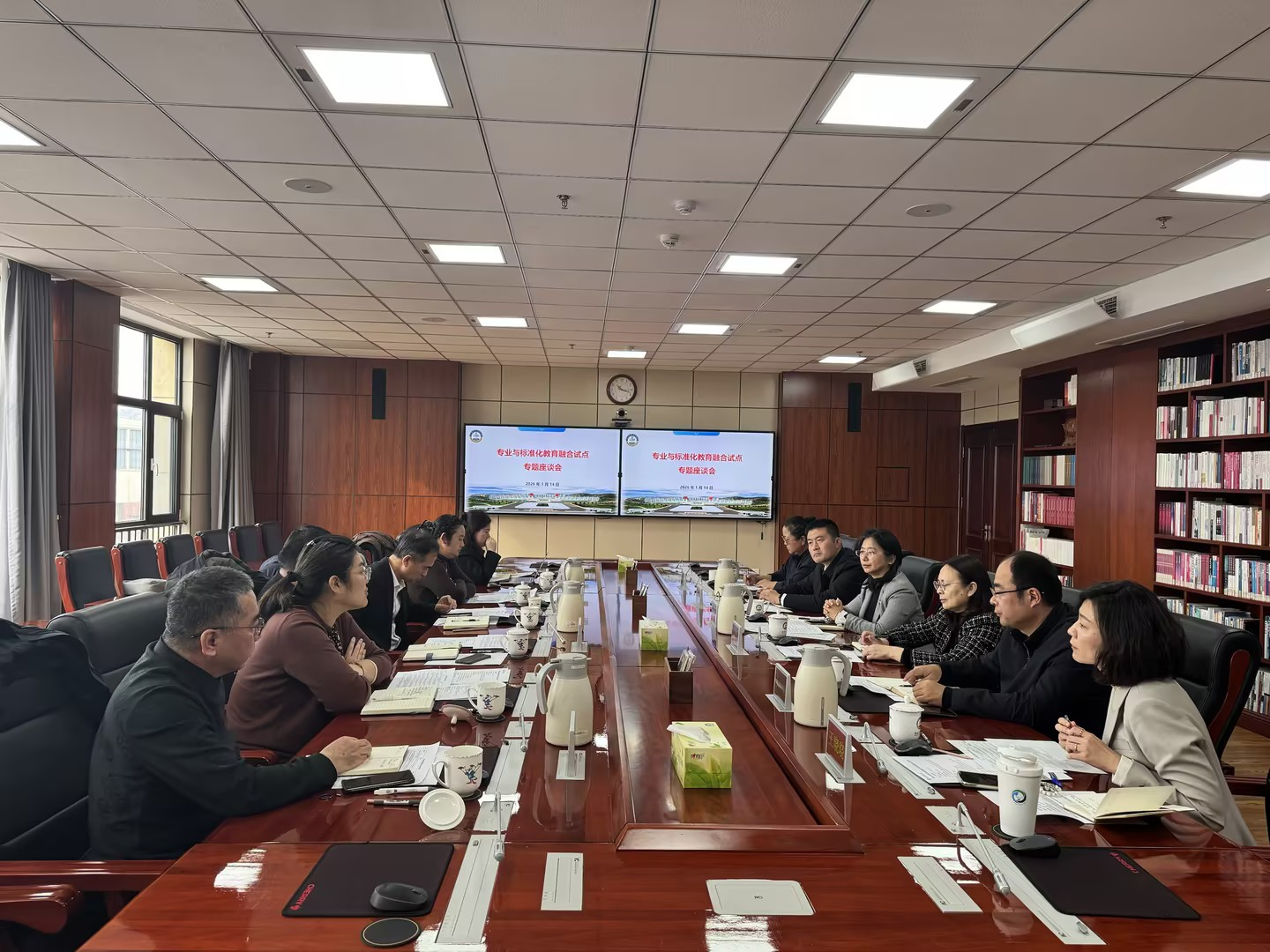 1月14日上午,365完美体育与青岛市标准化研究院召开专业与标准化教育融合试点专题座谈会。青岛市标准化研究院院长孙亚民、副院长王婷、副院长陈浩等参加座谈会,副校长李金红出席会议并致辞。