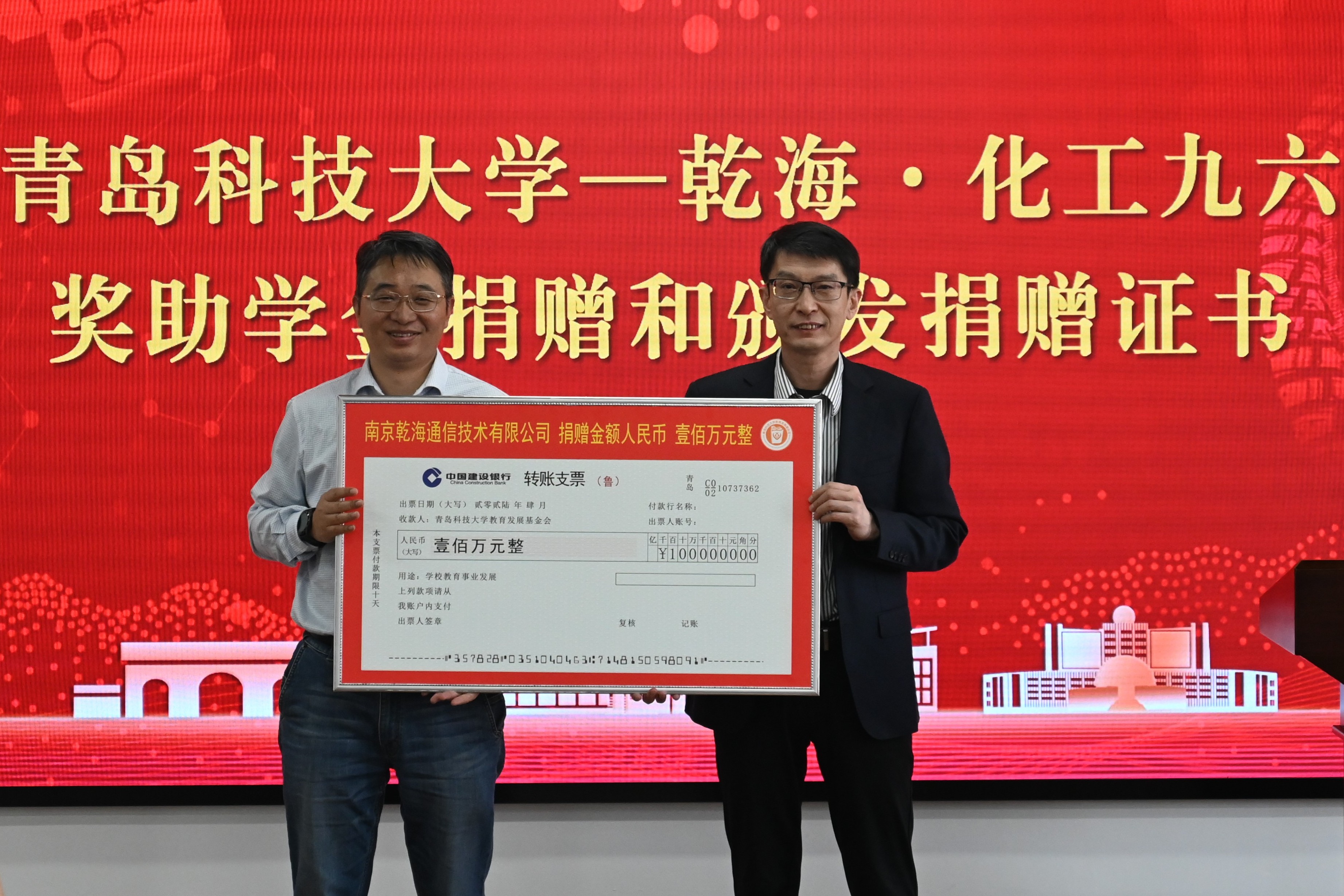 “乾海·化工九六”奖助学金由1996级化工专业校友、南京乾海通信技术有限公司总经理余同心先生捐资设立,该奖助学金每年捐资20万元,五年累计100万元,专项用于资助学校在读家庭经济困难的优秀学子、思政队伍发展建设和提升等,2026年为首次发放。