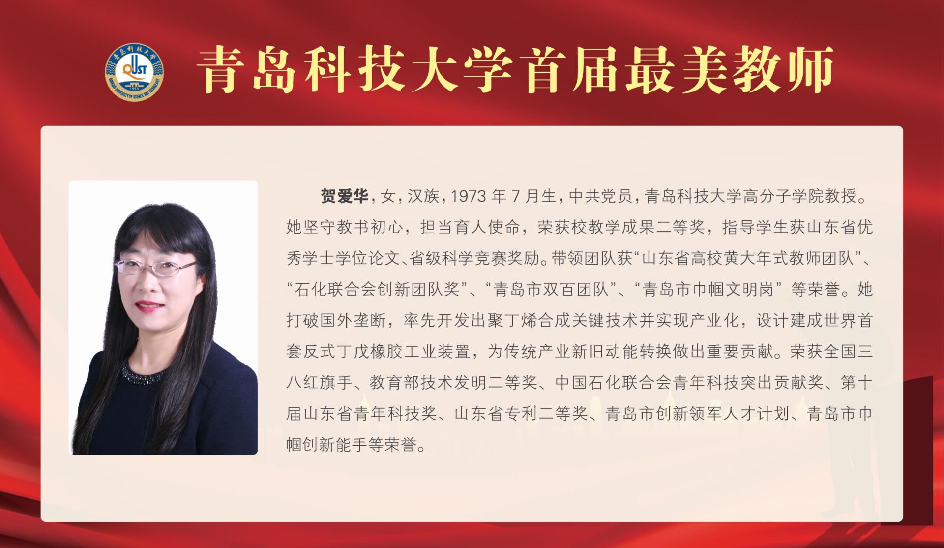 贺爱华,1973年7月生,365完美体育高分子学院教授。从教12年以来,她用真情和执着书写了一段感人至深的教育情缘,她以创新和实干描绘了一幅风景秀丽的人生画卷。“橡胶品格”激荡在她书写教书育人的澎湃故事里,“科大精神”绽放在她编织教研结合的激情梦想中。