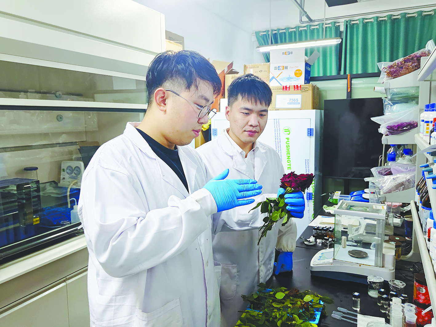 徐环斐老师团队在一次学校团委组织的社会实践活动中,前往玫瑰基地进行调研。面对满园芬芳的玫瑰,团队的目光却聚焦在那些被视为“废弃物”的落花与枝叶上。花卉废弃物指的是花卉种植过程因市场因素造成的销售空窗期内,花农剪切的废弃物,包含废弃花瓣、茎叶,富含纤维素、黄酮多酚等成分。每年鲜切花销售的重大节日前后,大量的花卉废弃物堆积在田间地头,既浪费资源又污染环境。
