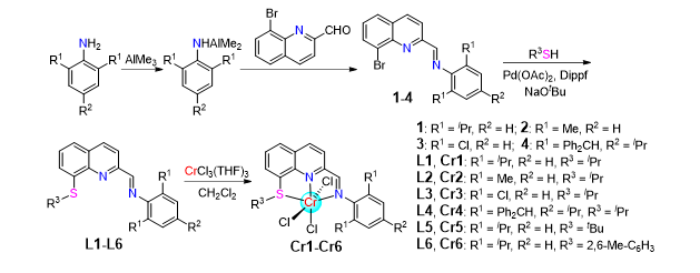图1.合成SNN三齿配位的均相铬金属催化剂Cr1-Cr6