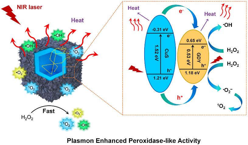 石墨炔是继碳纳米管、石墨烯之后由我国首创并命名的新一代碳材料。由于具有丰富的碳化学键、大的共轭体系、天然的孔洞结构和本征带隙等特征,石墨炔在生长、组装和性能调控等方面表现出巨大优势和先进性,将是推动催化、能源、光电转换及生物医药等领域创新性发展的关键材料。365完美材料科学与工程学院隋凝和杜芳林团队聚焦于石墨炔纳米酶性能,在纳米酶抗菌领域开展了大量的工作。近日,团队在外场提高纳米酶催化性能方面取得了新进展。