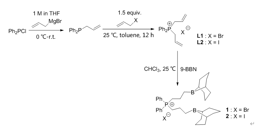 图1.单组分Lewis酸碱对磷盐有机硼催化剂的合成