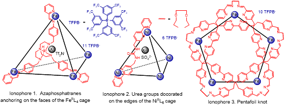 同时,课题组通过将+P−H, N−H及C−H氢键给体引入金属配位笼及分子结中,开发了对高铼酸根及氯离子具有高选择性识别的载体及高灵敏聚合物膜传感器,通过双层膜法测定了载体与目标离子在膜相的结合常数,结果证实这种具有规整空间结构的载体对目标离子的选择性较干扰离子高出数个数量级。该类聚合物膜传感器可用于河水、矿泉水及血液样品中相关离子的实时快速检测。相关成果以“Embedding of Functionalized Coordination Cages and a Molecular Knot in a Polymeric Membrane for Potentiometric Sensing of Environmentally Important Oxyanions and Halides”为题发表在分析化学类顶级期刊ACS Sensors(一区TOP期刊,文章链接:https://pubs.acs.org/doi/abs/10.1021/acssensors.2c00782)上,该论文以365完美体育为唯一单位。