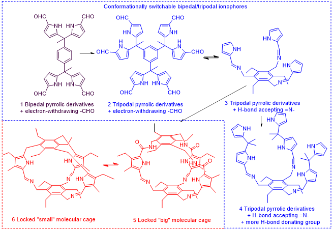 近日,环境学院青年教师李龙副教授团队在其前期研究工作的基础上(Analytical Chemistry, 2020, 92(21): 14740-14746;ACS Sensors, 2020, 5, 11, 3465-3473;ACS Sensors, 2021, 6,1,245-251;Sensors and Actuators B: Chemical, 2021, 345, 130413;Sensors and Actuators B: Chemical, 2021, 329, 129151;Sensors and Actuators B: Chemical, 2021, 345, 130413),开发了多种阴离子传感器。课题组首先吡咯醛作为氢键给体,设计并合成“双足型”及“三足型”磷酸根载体,通过形成小分子有机笼构建了氟离子载体,并据此构建了高选择性磷酸根及氟离子传感器。该传感器具有良好的选择性,已被成功用于多种环境样品如自来水、矿泉水及土壤中硝酸根、氟离子的检测。相关成果以“Anchoring H-Bond Donating/Accepting Pyrrolic Derivatives on Preorganized Scaffolds: Conformationally Switchable Bipedal/Tripodal and Locked Molecular Cage Ionophores for Potentiometric Sensing of Phosphate and Fluoride”为题发表在自然指数期刊、分析化学类顶级期刊Analytical Chemistry(一区TOP期刊,文章链接:https://pubs.acs.org/doi/abs/10.1021/acs.analchem.2c02024)上,该论文以365完美体育为唯一单位。