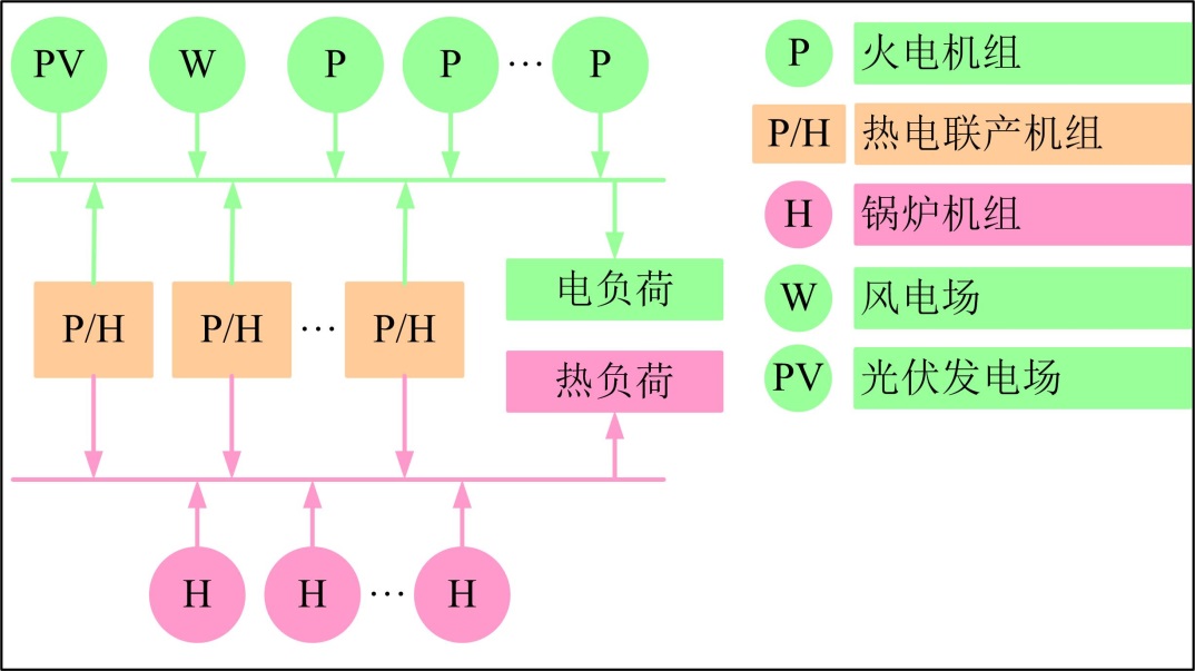 综合能源管理涉及电、热等能源的生产与消费。采用合适的方法,对电、热生产进行调度,具有重要的经济和社会价值。热电联产调度主要关注火电、热电联产与锅炉等机组的电、热输出分配,在满足大量约束的基础上,最小化生产成本与废气排放。优化热电联产系统的结构、处理约束并同时优化多个目标,是解决该问题的关键。