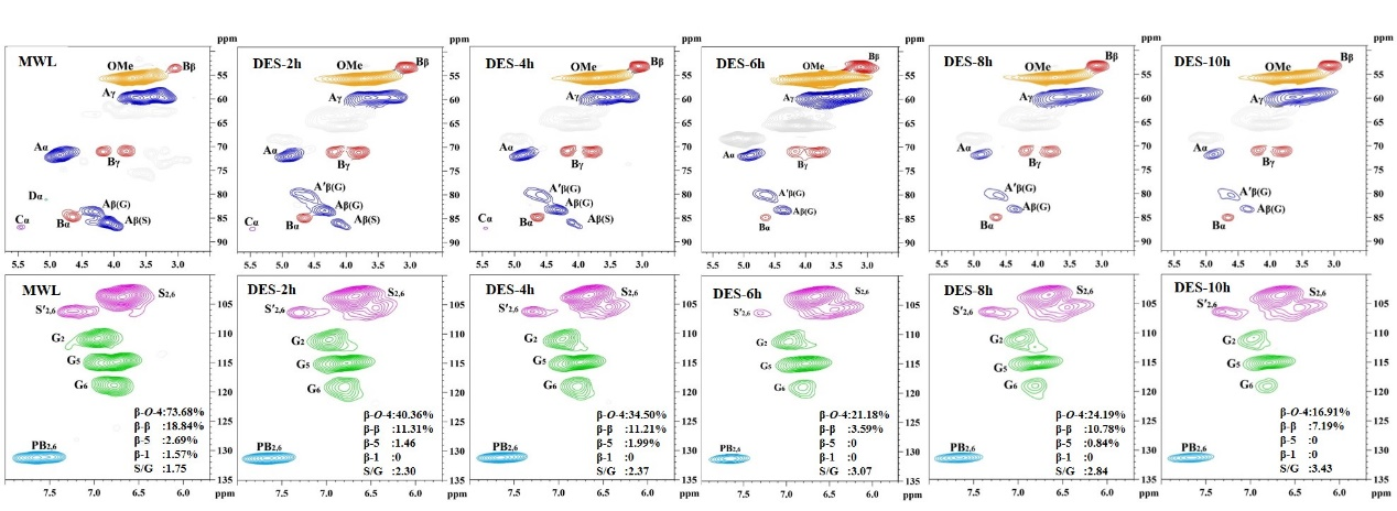 在新能源开发和环境保护的双重推动下,利用农林生物质制备燃料、化学品及材料已成为国际生物炼制领域的研究热点。近日,陈夫山/吉喆课题组在前期研究基础上(Bioresource Technol.2022, 351:127066;Biochem. Eng. J.2022, 178: 108302;Int. J. Mol. Sci.2022, 23: 11158.),采用氯化胆碱低共熔体系协同酶水解技术,将木质纤维素成功高效转化为小分子芳香族化合物(分子量为1112 g/mol)和葡萄糖(转化率为91%)。为系统揭示低共熔体系的作用机理,吉喆/陈夫山课题组采用化学分析结合原位显微成像技术,多尺度研究了低共熔预处理解构生物质细胞壁过程中主要组分的溶出规律,揭示了木质素转化为小分子化合物的作用机理,阐释了该系列变化对纤维素糖化效率的影响机制,并低共熔溶剂的循环使用性进行了评估。研究成果对木质纤维生物质能源化、资源化利用具有重要的指导意义。