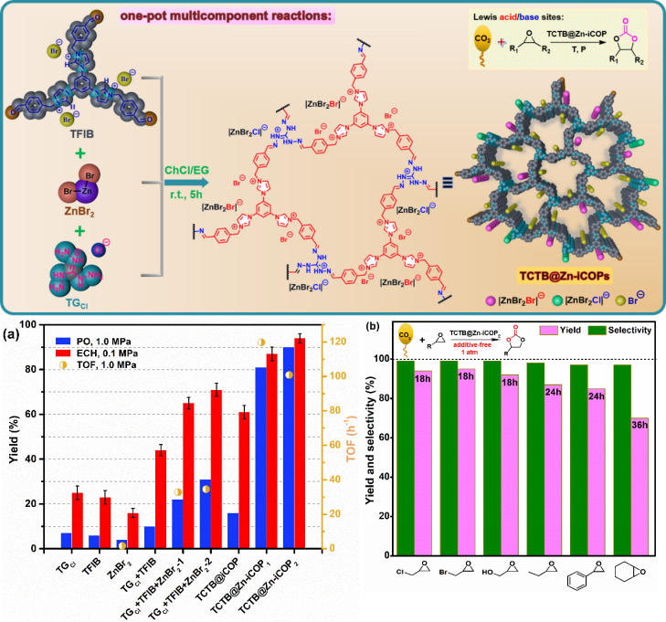 CO2是主要的温室气体,同时也是来源丰富、价廉、无毒且可再生的重要C1资源,CO2的高值化利用已引起工业界和学术界的广泛关注。然而,由于CO2的高热力学稳定性和动力学惰性,实现CO2高效率与高选择性转化仍面临巨大挑战。其中,以CO2和环氧化合物为原料,通过环加成反应合成有机碳酸酯是大规模资源化利用CO2极具产业化前景的途径之一,具有重要的研究意义。针对该反应路径,设计开发兼具高活性与高稳定性的多相催化剂是当前本领域的迫切需求。