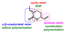 二氧化碳(CO2)资源丰富、无毒且成本低廉,是最具吸引力的C1可再生资源之一。将CO2与廉价石油化工原料烯烃转化为高附加值聚合物,具有显著的经济效益和重要的实际意义。其中,CO2和1,3-丁二烯调聚反应合成的α-亚乙基-δ-乙烯基-δ-戊内酯(EVP,图1)是一种多双键取代的δ-戊内酯。通过开环聚合,可以制备多官能团的脂肪族可降解聚酯,并通过后修饰实现进一步功能化。然而,由于EVP的低环张力和活性双键的存在,EVP的开环均聚合仍然是一个巨大的挑战。