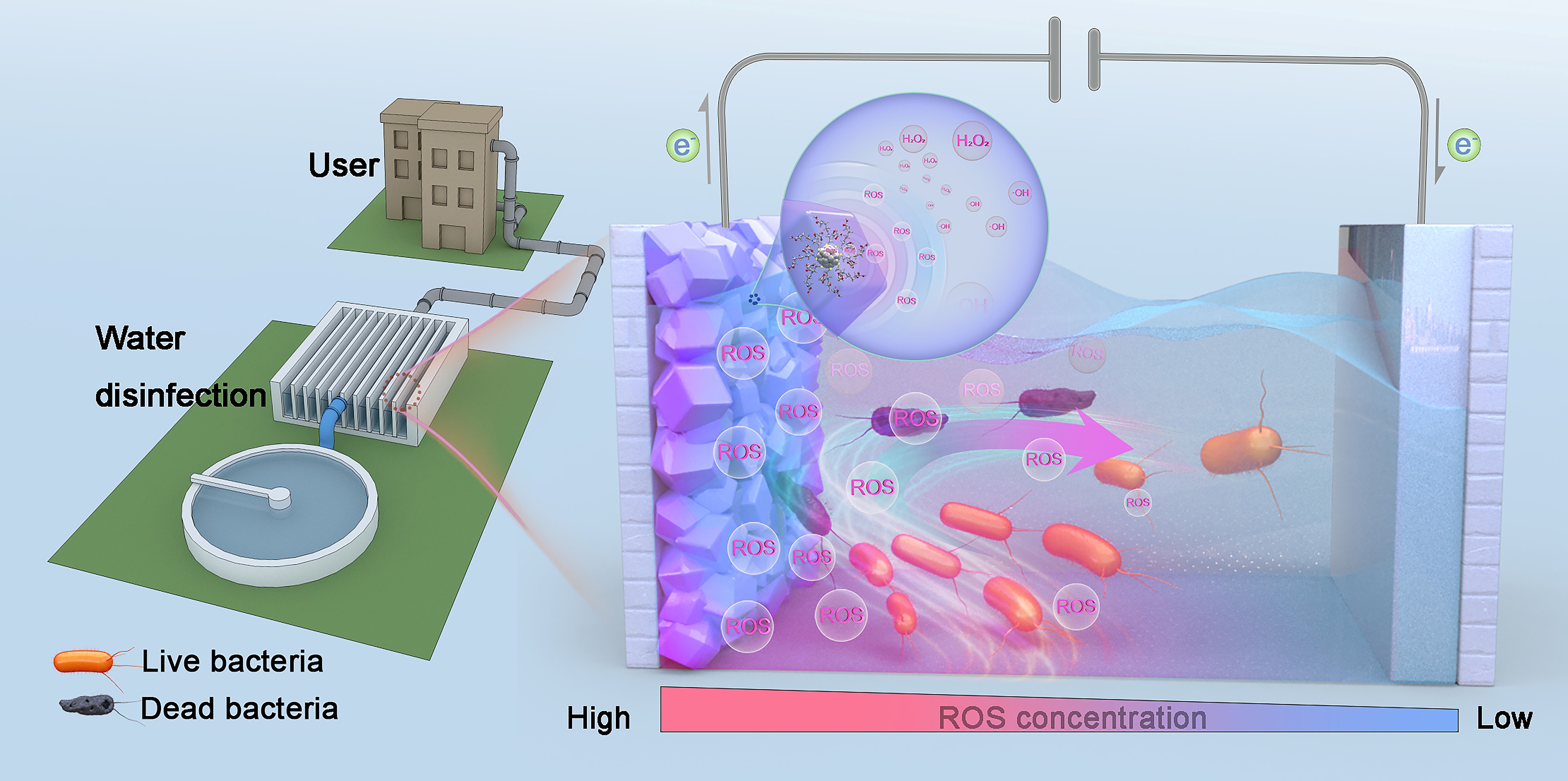 近日,365完美材料学院袁勋团队在自然子刊《Nat. Commun.》上发表了题为“Simultaneous generation of residue-free reactive oxygen species and bacteria capture for efficient electrochemical water disinfection”的研究论文。面对日益严峻的全球水资源安全挑战,该团队在电化学水消毒系统方面取得突破进展:开发了一种搭载原子级精确Ag28纳米团簇电极的电化学水消毒技术,实现了高效、连续、无残留的水体消毒。通过理性设计Ag团簇基电极材料,可提供1)大量的细菌电吸附位点,用于智能细菌富集;2)Ag团簇可原位生成局部高浓活性氧(ROS),结合银本身的本征抗菌特性实现双机制细菌灭活;3)基于电化学水消毒系统的“活死细菌迭代”(即活细菌吸附→细菌灭活→死细菌脱附)效应,实现该系统的连续水消毒。实验表明,该电化学水消毒系统对革兰氏阳性菌、革兰氏阴性菌及真菌均具有超过99.99%的杀菌率,且经过40次循环使用性能仅下降0.75%,连续运行5小时以上仍可维持99.90%的抗菌效率。此外,该系统还具有低能耗、高处理通量及高环境耐受能力等特点。这项研究不仅显著提升了饮用水消毒技术的效率与可靠性,还为全球范围内的水质安全问题提供了全新的解决思路。