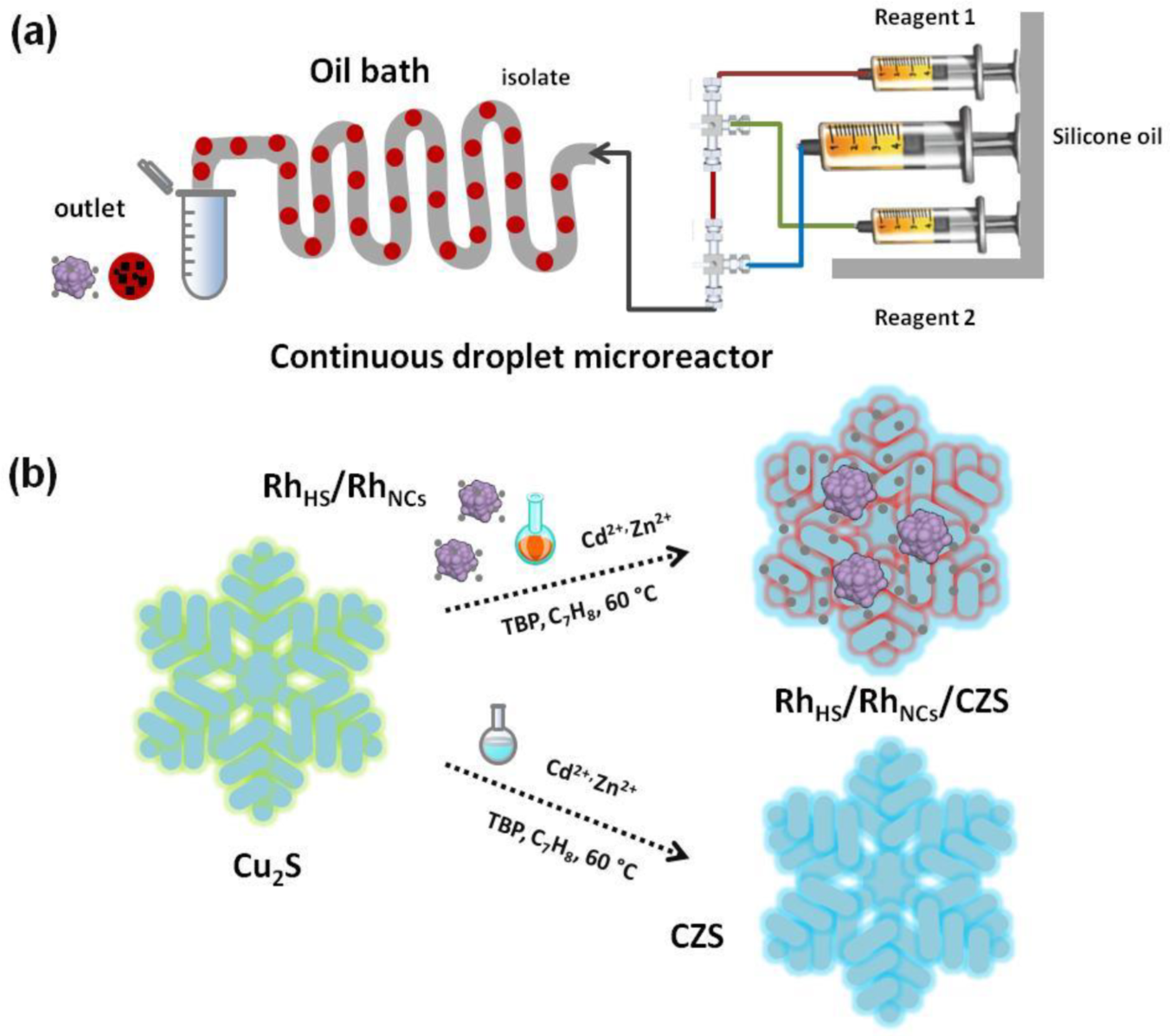 在光催化析氢领域,博士研究生张德鲁采用液滴微反应器-阳离子交换策略,将Rh分级结构(RhHS)和Rh纳米簇(RhNCs)负载于雪花状CdZnS(CZS)结构上。RhHS/RhNCs/CZS在光催化析氢反应中的析氢效率为926.0 μmol h⁻¹ g⁻¹,相较于CZS和CdS分别提升了5.9倍和10.5倍(Chemical Engineering Journal499 2024 156123)。张德鲁博士还通过Pt-N3键将Pt活性位点锚定在具有缺陷的g-C3N5-x-O上,制得的Pt SAs/g-C3N5-x-O在光催化析氢中表现出卓越的析氢效率(1809.2 μmol/h·g⁻¹),分别为原始g-C3N5、Pt NPs/g-C3N5-x-O和Pt SAs/g-C3N5的119.0倍、2.7倍和3.29倍。密度泛函理论(DFT)计算揭示了Pt到N的电子转移路径,并在g-C3N5-x-O中N原子周围形成电子富集区域。这一特性不仅极大地加速了电荷分离,还显著降低了H*生成的能垒(|ΔGₕ*| = 0.18 eV)(Chemical Engineering Journal505,2025,159567)。此外,课题组在原子尺度上将单原子铑(Rh₁)成功锚定于中空微花状MoS₂/富硫空位CdZnS(CZS-SVs)上,从而显著提升了H2的产率。密度泛函理论(DFT)计算表明,在MoS2/CZS-SVs上引入铑单原子位点能够显著促进电子转移,从而将H*中间体转化为H2。此外,原位拉曼分析进一步证实了铑和硫的双质子还原活性位点的存在。(Journal of Colloid and Interface Science(2025), doi: https://doi.org/ 10.1016/j.jcis.2025.01.104)。
