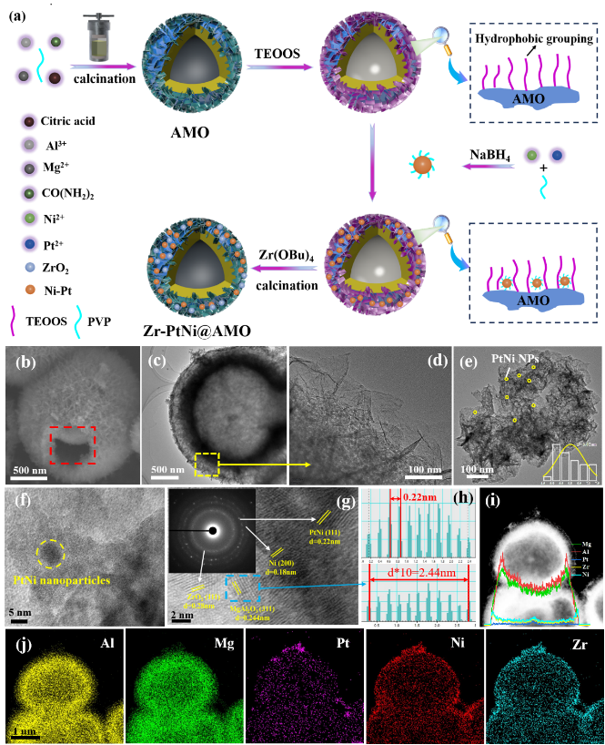 在CH4-CO₂重整领域,硕士研究生高永生提出一种疏水驱动策略,成功制得活性位高分散的PtNi合金@Zr掺杂3D空心花状MgAl₂O₄微球催化剂(Zr-PtNi@AMO)。550°C催化反应30小时,Zr-PtNi@AMO的CH4和CO2转化率未明显下降,表现出优异的抗烧结和抗积碳性能。研究发现催化剂独特的抗积碳性能归因于Zr掺杂引入的氧空位,提高了氧的迁移能力,抑制了积碳的生成。此外,Zr掺杂还能够增加碱性活性位点,从而增强对CO₂的吸附与活化能力,加速碳物种的转化。此外,研究发现CH氧化路径的有效能垒比C氧化路径低1.01 eV,这也有助于抑制积碳的形成(Journal of Colloid and Interface Science(2025), doi: https://doi.org/10.1016/j.jcis.2025.01.101)。