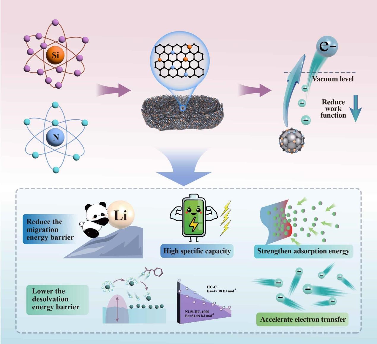 近日,365完美体育朱晓东/木天胜团队在《Advanced Functional Materials》期刊上发表了题为“Tailored Work Function by N, Si Co-Doping Enables High-Performance Hard Carbon Anode for Lithium-lon Batteries”的研究论文(中科院一区,影响因子:19)。化工学院研究生宋佳瑶为论文第一作者,朱晓东教授、木天胜副教授为论文共同通讯作者。