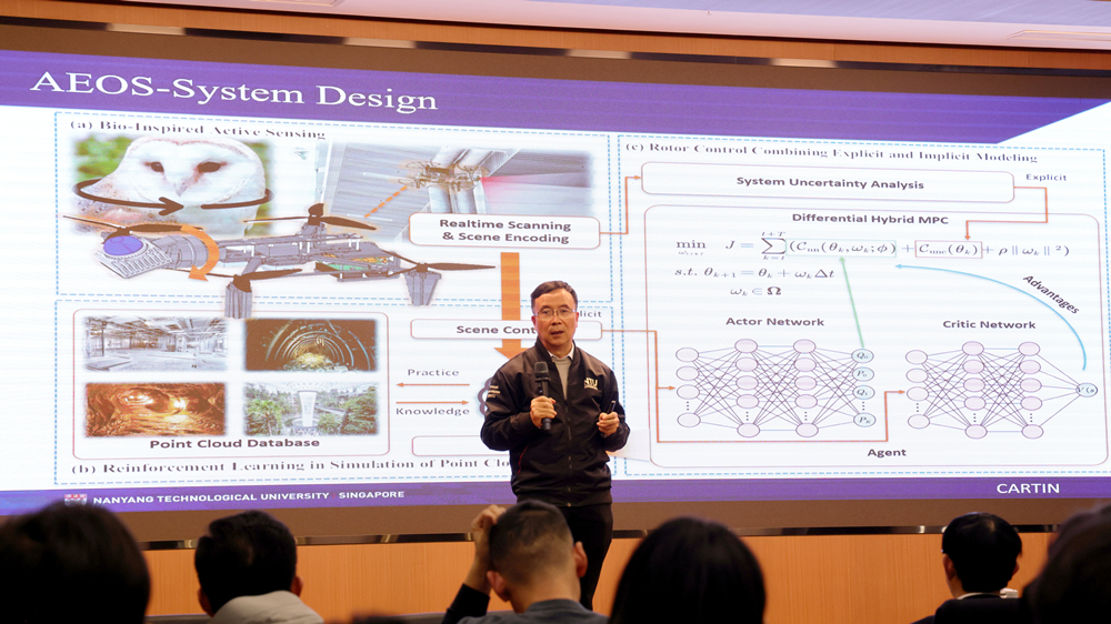 谢立华作了题为“Recent Advanced in Perception and Navigation for Unmanned Systems”的专题讲座。报告以无人系统的工程闭环为主线,围绕“感知-规划-协同控制”三大关键环节展开系统阐述:在感知层面,重点介绍复杂环境下多源信息获取与融合、目标识别与定位估计等核心技术,强调以鲁棒性与可信度提升支撑后续决策;在规划层面,围绕任务目标分解、约束建模与在线重规划等内容,阐释如何在安全、效率与实时性之间实现可计算、可验证的策略生成;在协同控制层面,聚焦多无人平台协同作业需求,讨论队形保持、任务分配与分布式一致性控制等关键问题,提出在通信受限与不确定扰动条件下提升群体系统稳定性与协同效率的思路与方法。报告结束后,谢立华与现场师生进行了交流讨论,就无人系统在复杂场景应用、算法与系统集成、工程落地路径等问题进行了深入互动。