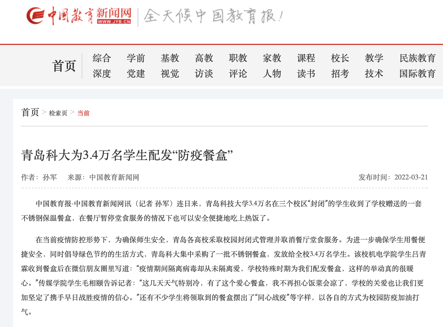 中国教育新闻网http://www.jyb.cn/rmtzcg/xwy/wzxw/202203/t20220321_685619.html