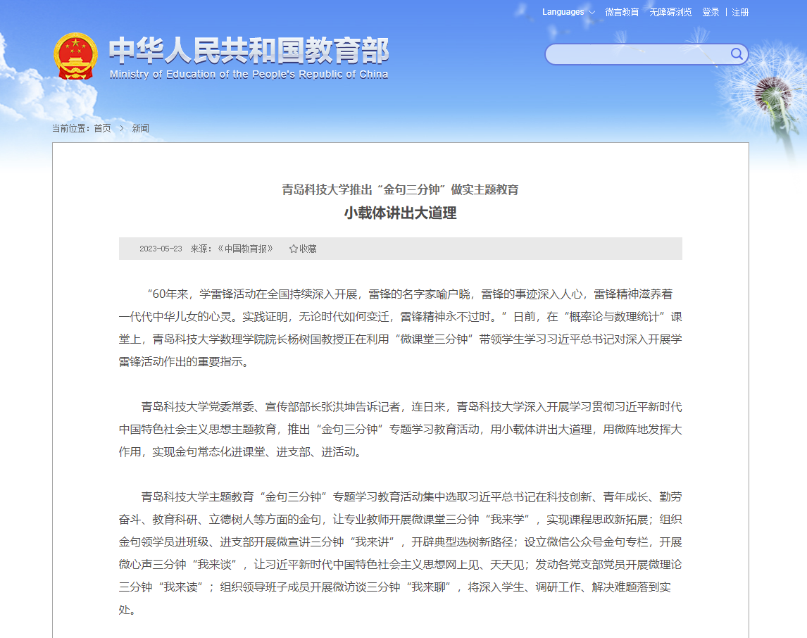 教育部官网http://www.moe.gov.cn/jyb_xwfb/moe_2082/2023/2023_zl05/202305/t20230523_1060922.html