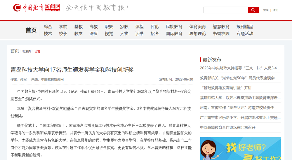 中国教育新闻网http://www.jyb.cn/rmtzcg/xwy/wzxw/202306/t20230630_2111063137.html