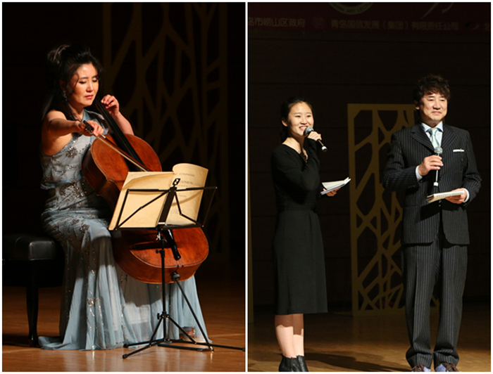 艺术学院党总支书记孙佩珊介绍了两位艺术家及演奏曲目。洪性恩从古典与现代的角度,诠释了不同音乐家从巴洛克时期到浪漫主义时期的大提琴经典作品。表演艺术家李英河为大家展示了他对韩国电影的脱口秀,获得了全场观众们的阵阵掌声。