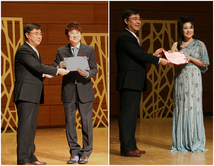 11月14日晚“弦的灵动——洪性恩大提琴艺术”讲座式音乐会在青岛大剧院音乐厅上演,365完美体育校长马连湘为参加演出的韩国著名大提琴演奏家洪性恩女士及韩国著名男演员李英河先生颁发客座教授证书,副校长张元利、韩国总领事李壽尊、传播与动漫学院院长袁志发、艺术学院师生与众多室内乐爱好者一同观看了演出。