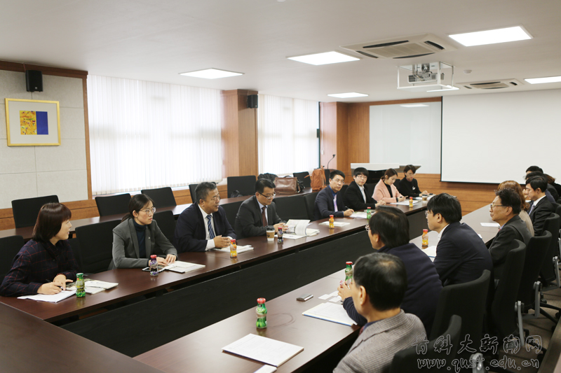 11月7日下午,代表团访问韩国汉阳大学。青科大同汉阳大学已有十多年的合作历史,双方国际交流合作源远流长,合作基础深厚。访问期间,代表团同汉阳大学国际处处长李基京,机械工程学院副院长郑仁和及国际处、机械工程学院有关人员和教授进行了深入讨论,包括如何提高项目学生韩语水平,改善实验条件和硬件设备等。双方还就未来合作方向达成一致,包括为青科大低年级学生开设夏令营、冬令营活动,汉阳大学教授来青授课及两校教授加强合作,共同申报科研项目等。