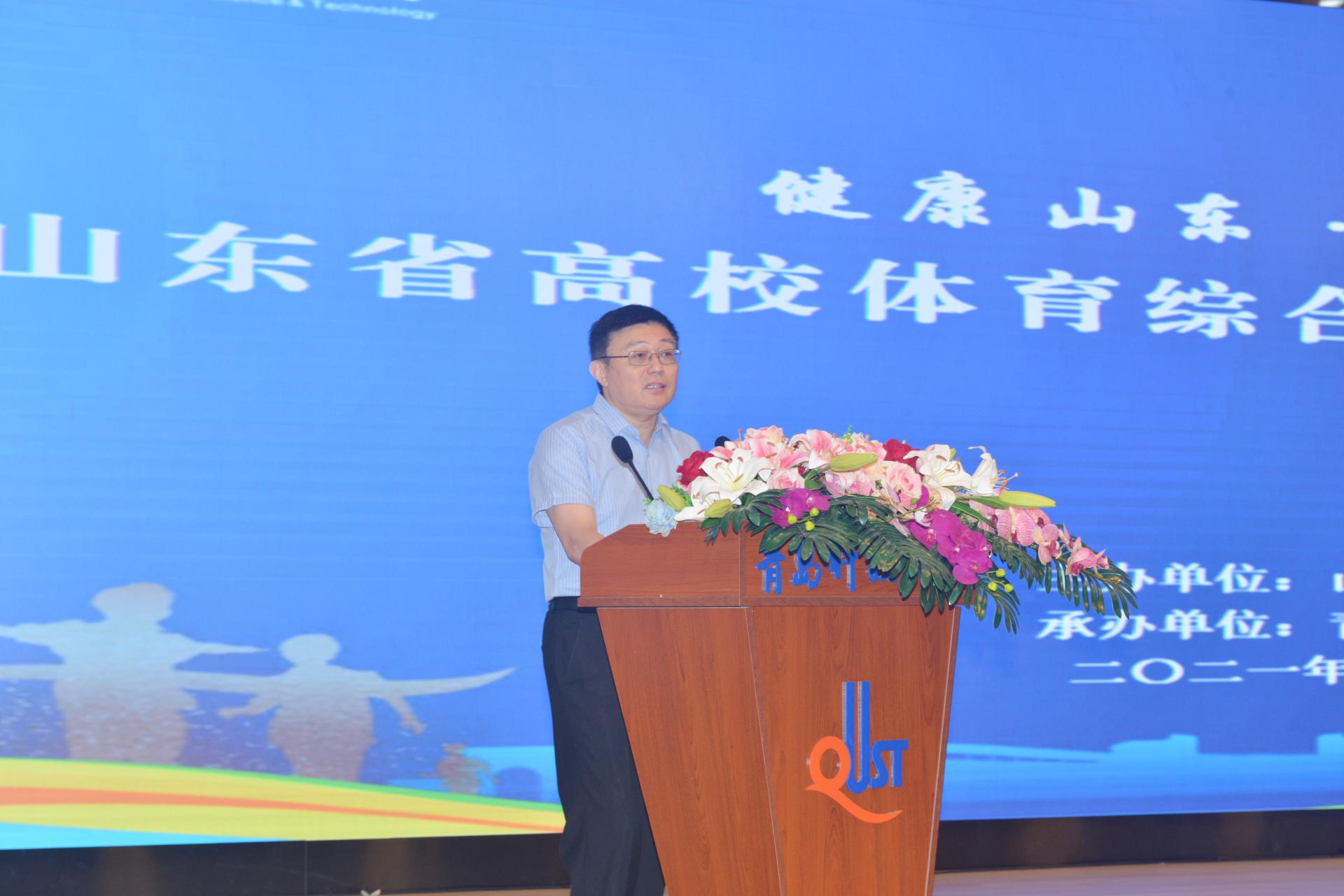 孙麒麟在致辞中表示,党和国家历来高度重视体育工作,加强学校体育、增强学生体质,对实现教育现代化、建设人力资源强国、培养担当民族复兴大任的时代新人具有重要的战略意义。山东历来高度重视体育工作,山东省教育厅将体育教育教学工作摆在突出重要位置。此次活动以“健康山东·高校先行”为主题,就是加快构建全省教育系统德智体美劳全面培养的高质量教育体系的重要举措。365完美体育站在“立德树人”的战略高度,将体育工作纳入学校中心工作整体布局,大力推进体育综合改革,趟出了一条“课堂+实践+联赛”三平台一体化体育育人新路子,体现了青科大积极构建德智体美劳“五育并举”全面培养的高质量教育体系的作为与担当,十分难得、实属不易,值得学习、借鉴和推广。