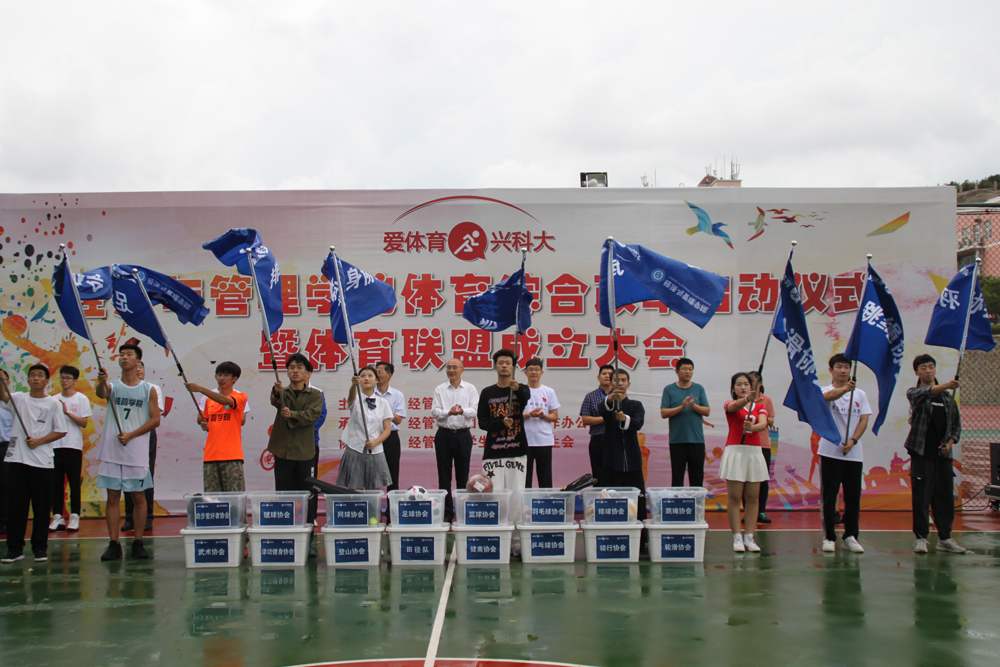 大会上,校团委书记毛常明宣读了《关于经济与管理学院成立体育联盟的批复》;经管学院党委书记李德成表示体育精神是校园文化软实力的有力彰显,全体经管学子要主动融入学校发展大局,在体育锻炼中享受乐趣、增强体质、健全人格、锤炼意志;学院副院长宫攀公布了《经济与管理学院体育综合改革实施方案》;2021级学生代表宋柯稼宣读了《经济与管理学院体育综合改革倡议书》。与会领导为联盟17个体育协会授旗。跳绳协会、排球协会、篮球协会等8个协会进行了风采展示。