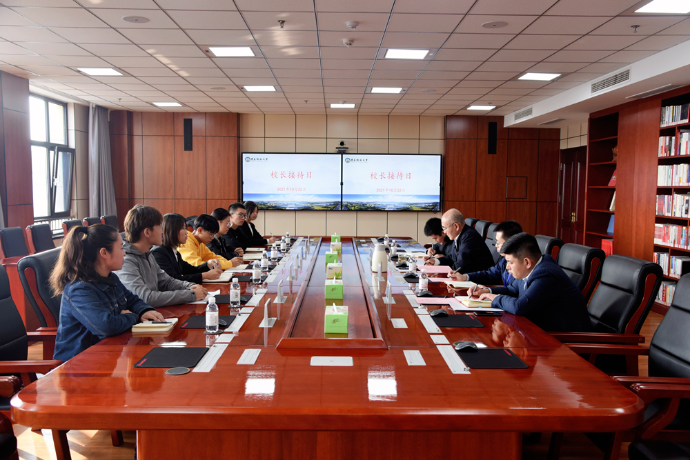 10月22日,学校“校长接待日”活动在崂山校区综合服务楼5015会议室举行。校长陈克正与预约来访的2021级新生代表进行了座谈交流。
