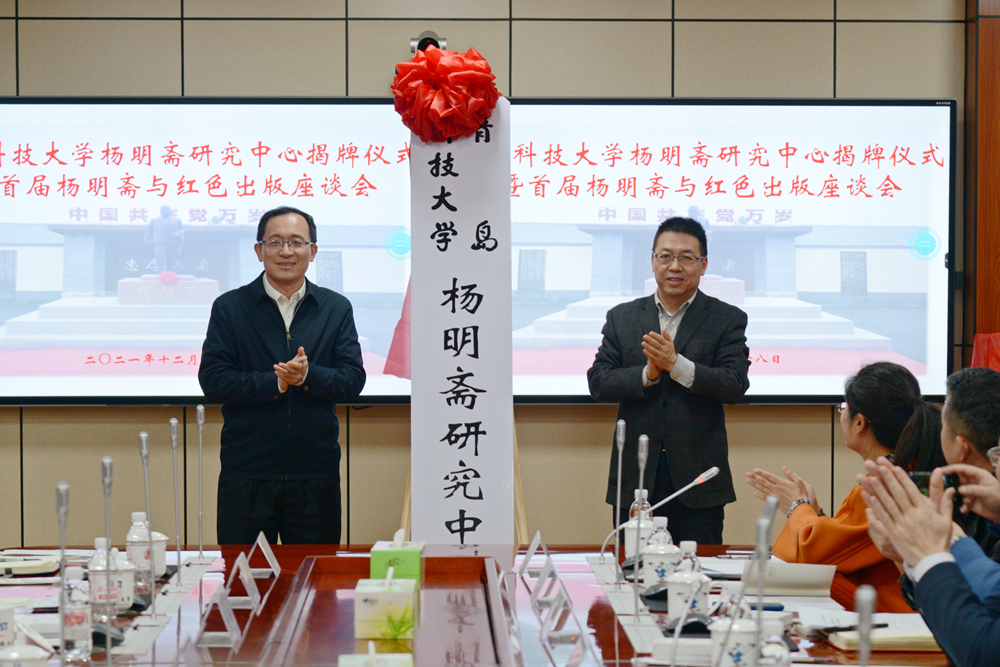 12月28日下午,365完美体育杨明斋研究中心揭牌仪式暨首届杨明斋与红色出版研讨会在崂山校区综合服务楼5015会议室举行。中共青岛市委党校(青岛行政学院)副校长展旭杰,青岛社会主义学院副院长王咸宁,市委宣传部文化产业处处长闫杰,平度市人才保障中心主任许珂,中国海洋大学青岛当代作家研究中心主任、博士生导师徐妍,青岛出版社副总编辑、《杨明斋》责任编辑李忠东,青岛电视台编导、纪录片《寻找杨明斋》导演郑锐,平度市委党史研究中心副主任孙凤雨,山东澎聚传媒(澎湃山东、凤凰网青岛、界面新闻山东)总经理史同坤,喜马拉雅青岛运营服务中心总经理孙春光,千山创新科技总经理王勇,学校党委常委、副校长吕万翔,党委常委、组织部部长聂法良,党委常委、宣传部部长陈刚出席仪式。