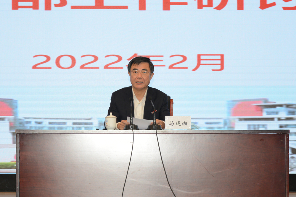 21日上午,党委书记马连湘传达了中共中央、国务院有关人才建设方面的指导意见,教育部、财政部、国家发展改革委《关于深入推进世界一流大学和一流学科建设的若干意见》,山东省2022年工作动员大会精神,从绩效考核全面起势、科研工作展现新亮点、校友工作嘉报频传等三个方面简要总结了寒假期间取得的成绩,并作动员讲话。马连湘强调,一是要准确把握形势,通过学习坚定信心、提振精神;二是要准确把握规律,通过学习联系实际、掌握方法;三是准确把握重点,通过学习凝心聚力、攻坚克难,通过认真研讨、学习研究,将自己摆进去、将岗位摆进去、将职责摆进去,凝聚推动学校高质量发展的磅礴力量。