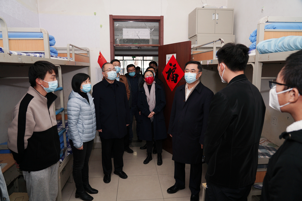 在崂山校区北区2号楼、北区9号楼学生宿舍,马连湘、丁林看望了机电学院、自动化学院部分学生,详细询问了学生上课、生活等采取的防控措施,希望同学们相互鼓励支持,保持良好心态,积极配合学校各项防控举措,勉励大家同舟共济、共克时艰,夺取疫情防控的最终胜利。马连湘强调,当前国际、国内疫情防控形势严峻复杂,一是要以高度的政治责任感、使命感重视疫情防控工作,不折不扣落实好上级疫情防控工作要求,按规定做好重点信息摸排、全员核酸检测、校园环境消杀等工作,坚决筑牢校园疫情防控安全防线。二是要充分发挥全校各级党团组织作用,干部冲锋在前、党员先锋带头,加强学生思想疏导、情绪安抚,引导学生增强体育锻炼。要进一步发挥好师生志愿者作用,积极配合落实学校各工作专班安排。三是要全力保障正常教学科研等校园秩序,在全力做好疫情防控的基础上,未雨绸缪、精心组织,科学合理安排教学、科研、管理等工作,扎实做好各项工作应急预案。
