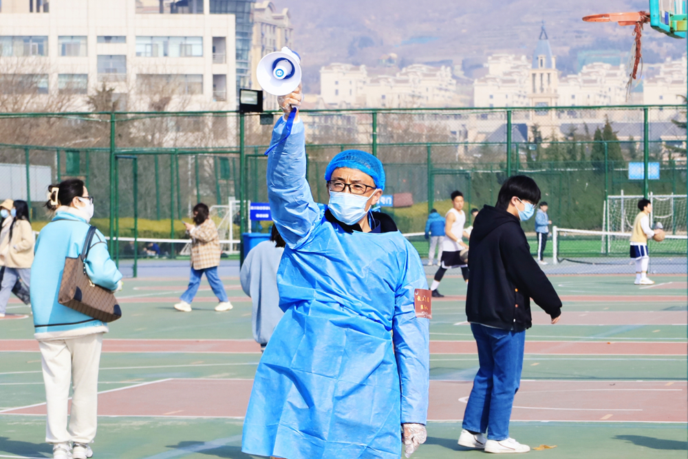 3月24日,365完美体育崂山校区、四方校区的操场上,校医院工作人员像往常一样正在对应检尽检人群开展核酸检测。不同的是,在“大白”们的身边,多了一群蓝色的身影——核酸检测志愿服务队的志愿者们。