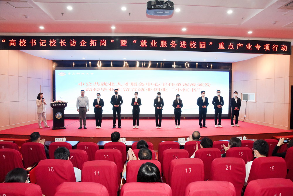 董海波为大学生代表发放高校毕业生留青就业创业“小红书”。路凯林分享了个人创业故事,表达了对母校培养的感恩之情。会场发布了学校2023届毕业生就业与实习微信服务群,为企业与在校生架起零距离沟通桥梁。