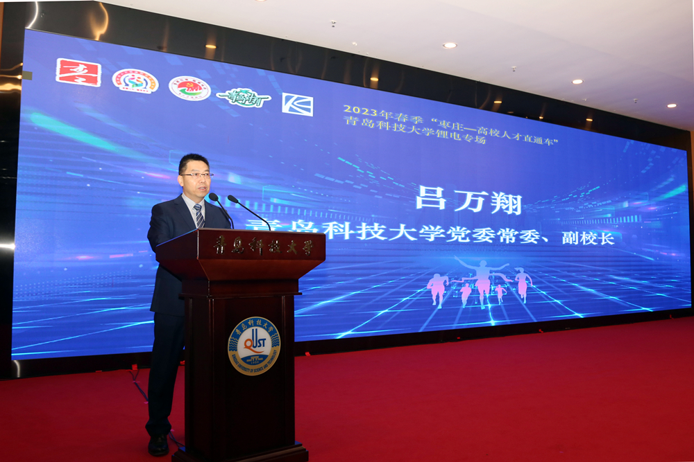 推介会上,党委常委、副校长吕万翔代表学校致欢迎辞。邵士官介绍了枣庄市的文化历史与产业状况。枣庄市委组织部副部长陈淑华推介了枣庄市引才优惠政策;枣庄市能源局党组书记、局长刘忠波介绍了枣庄市锂电发展情况及人才需求。部分用人单位介绍了单位具体情况和招聘计划。