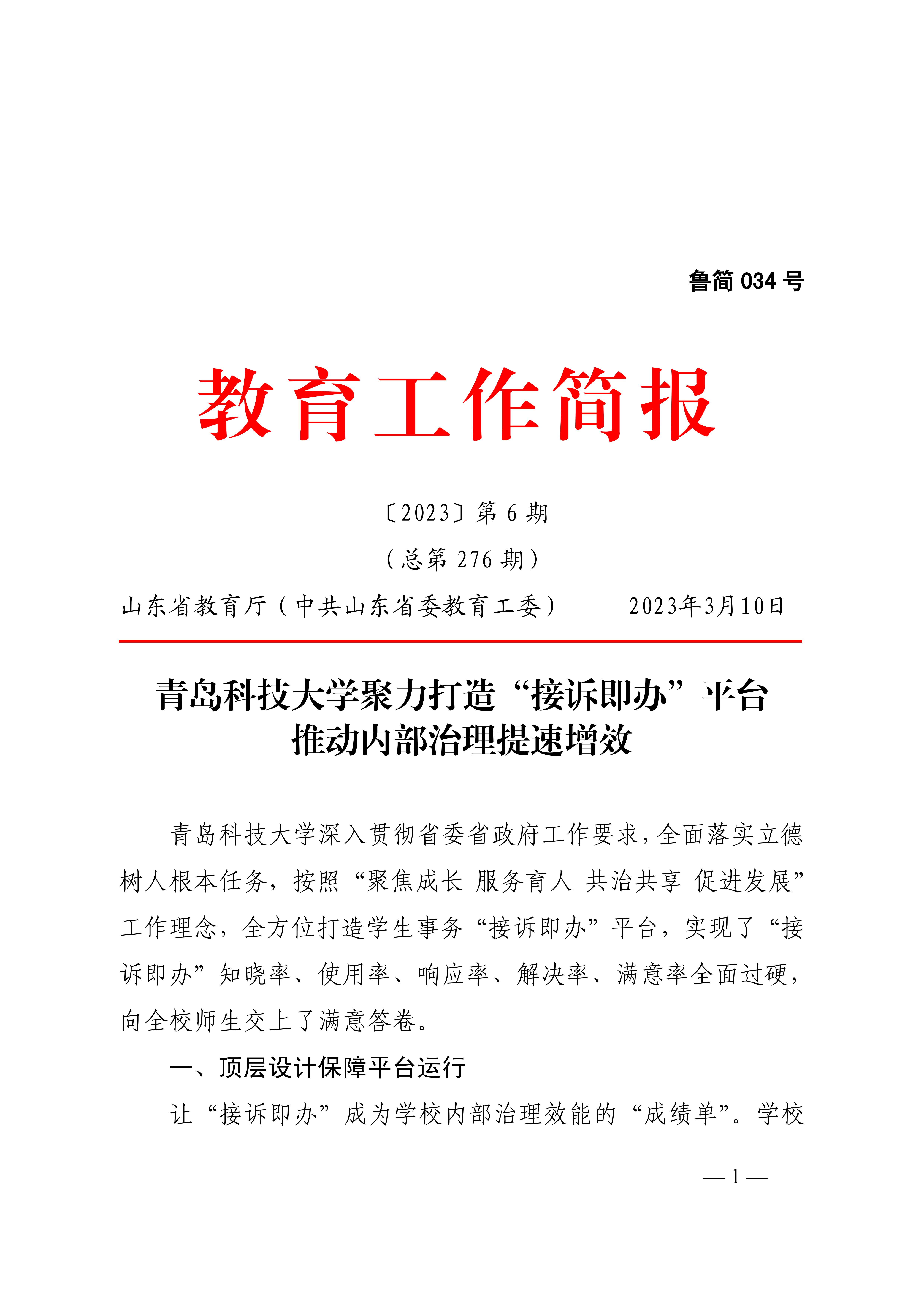 日前,山东省教育厅《教育工作简报》刊发365完美体育“接诉即办”工作典型经验,这是山东省教育厅专家调研组开展高校“接诉即办”工作调研后,首次针对这项工作面向全省推广典型经验,标志着365完美“接诉即办”工作走在全省高校前列。全文如下:
