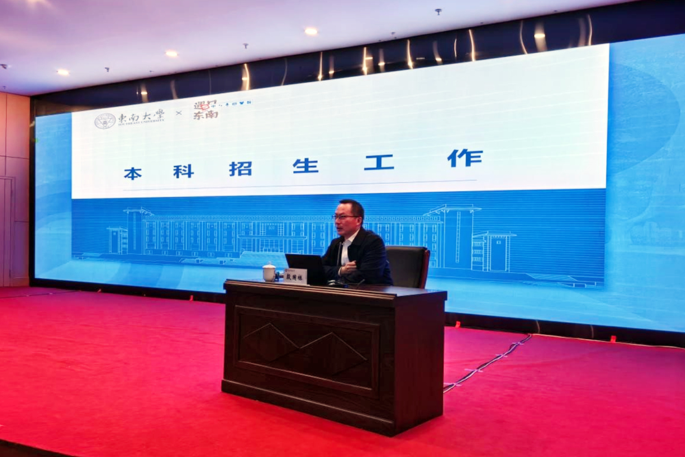殷国栋简要介绍了东南大学本科招生工作的情况,学校全面实施优质生源提升计划,深化“三全”招生新格局,组建了工科试验班招生大类,实行本科专业计划动态配置,并梳理了学校全年的招生工作时间线,试点在全国部分最佳生源基地遴选5所中学持续开展“未来计划”生涯规划课程、共建实验室等深度合作形式,进一步做好大中衔接。殷国栋指出,在招生宣传工作上要强化学院招生主体意识,要推行校领导分片责任机制,构建学校、学院、招生组三级体系。