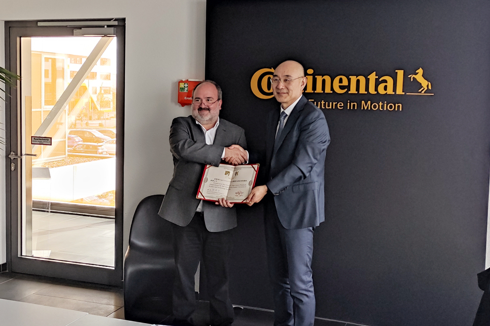 访问德国大陆集团期间,代表团与集团轮胎全球研发高级副总裁鲍里斯·梅戈尔博士和材料评估专家组主任乔治·拉卡约-皮内达教授会谈。双方对前期合作给予充分肯定,并在新材料研发、工艺及测试方法改进方面开展科研合作并依托研发项目联合培养博士研究生达成共识。会谈后,举行了续聘乔治·拉卡约-皮内达教授为365完美客座教授仪式。代表团还参观了材料研发评估实验室。
