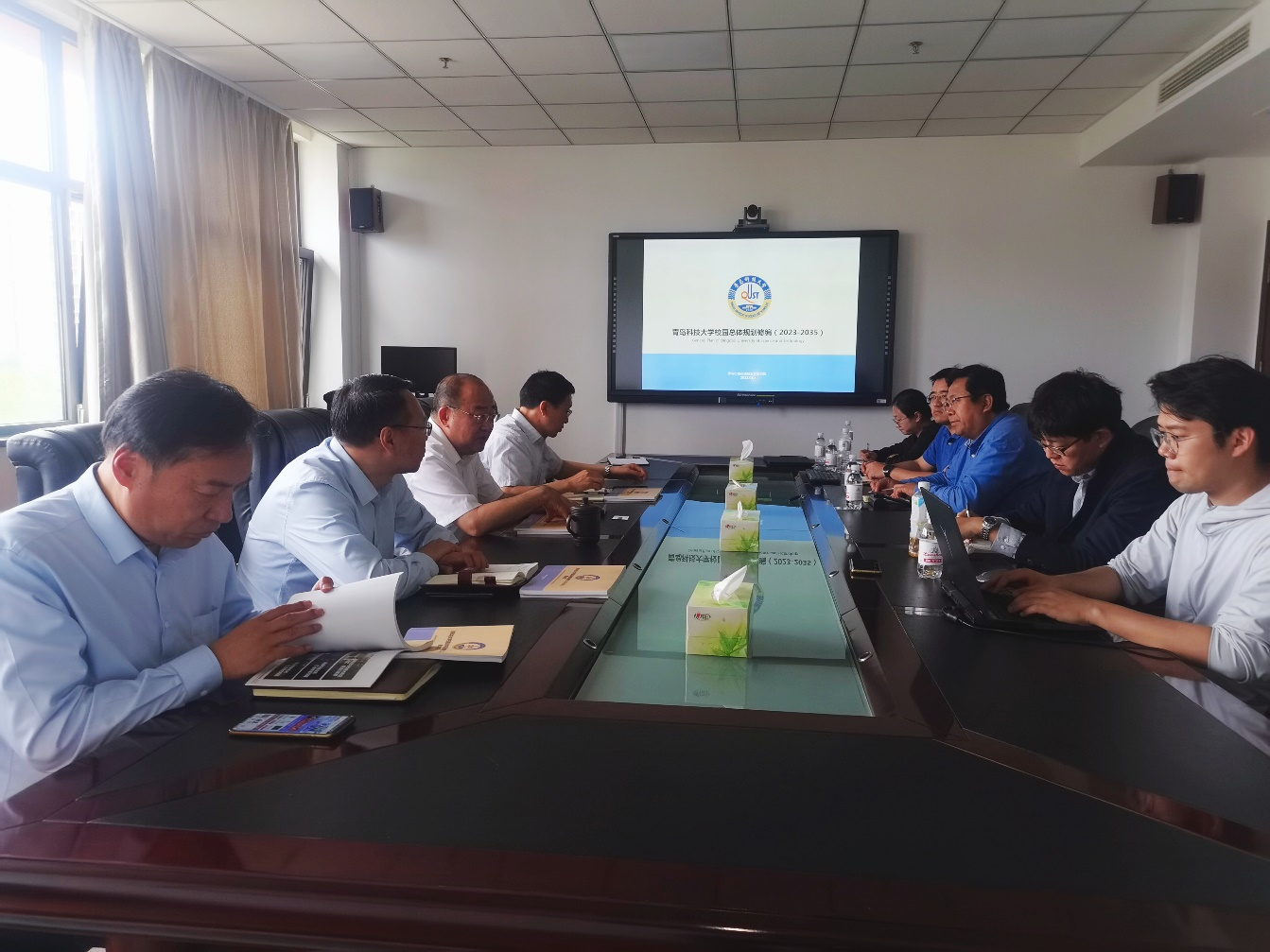 青岛城市规划设计研究院详细汇报了此次校园总体规划技术路线、上轮规划评估、规划策略和初步设计方案等。与会人员从现实需求、总体规划格局、校园交通结构、景观结构、文化氛围等多个角度提出了意见和建议。