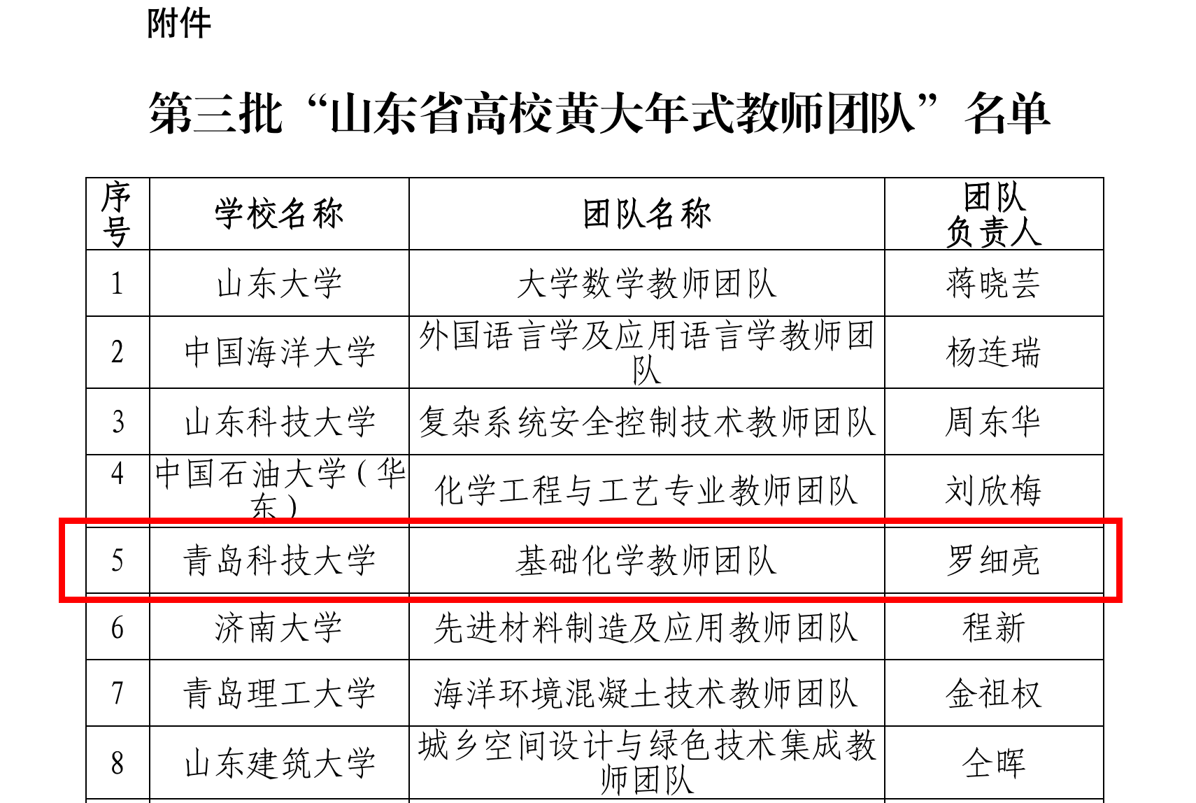 近日,山东省教育厅发布《关于公布第三批“山东省高校黄大年式教师团队”名单的通知》(鲁教师函〔2023〕44号),365完美体育罗细亮教授领衔的基础化学教师团队成功入选。截至目前,学校已有3个教师团队获批“山东省高校黄大年式教师团队”。