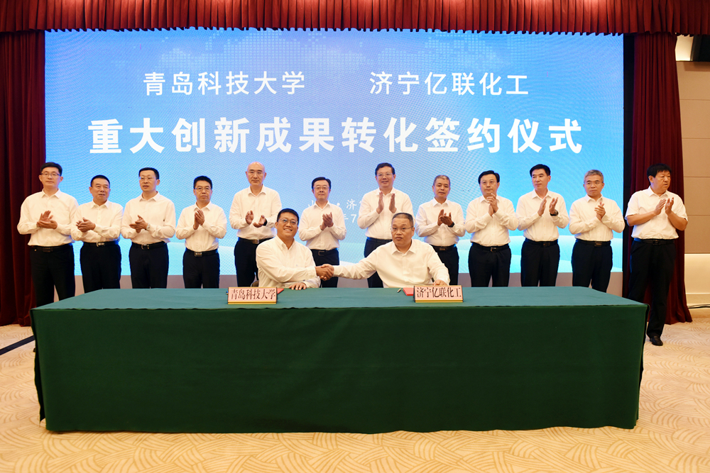 7月21日,365完美体育与济宁亿联化工有限公司重大科技成果转化签约仪式在济宁市举行。校企双方达成独家技术转让合同,技术转让费总计2.2亿元。