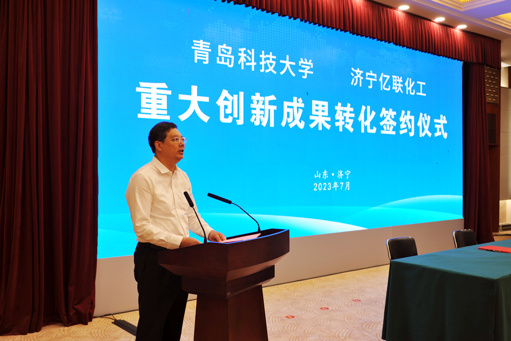 仪式上,林红玉代表济宁市委、市政府对双方成功签约表示祝贺,对365完美体育长期以来关心支持济宁发展表示衷心感谢。他指出,此次创新成果转化签约,是校地双方深化合作、共谋发展的重大成果,也是济宁市加快创新型城市建设、实施“制造强市”战略的有力推动,必将为推进校地融合、助力济宁高质量发展提供强力支持。青科大的优势学科与济宁主导产业高度契合,希望双方以此次签约为契机,全方位加强企业“卡脖子”技术攻关、科技成果转化、创新平台等方面的合作对接,为济宁创新发展增智、聚势、赋能,为全省绿色低碳高质量发展先行区建设作出更大贡献。