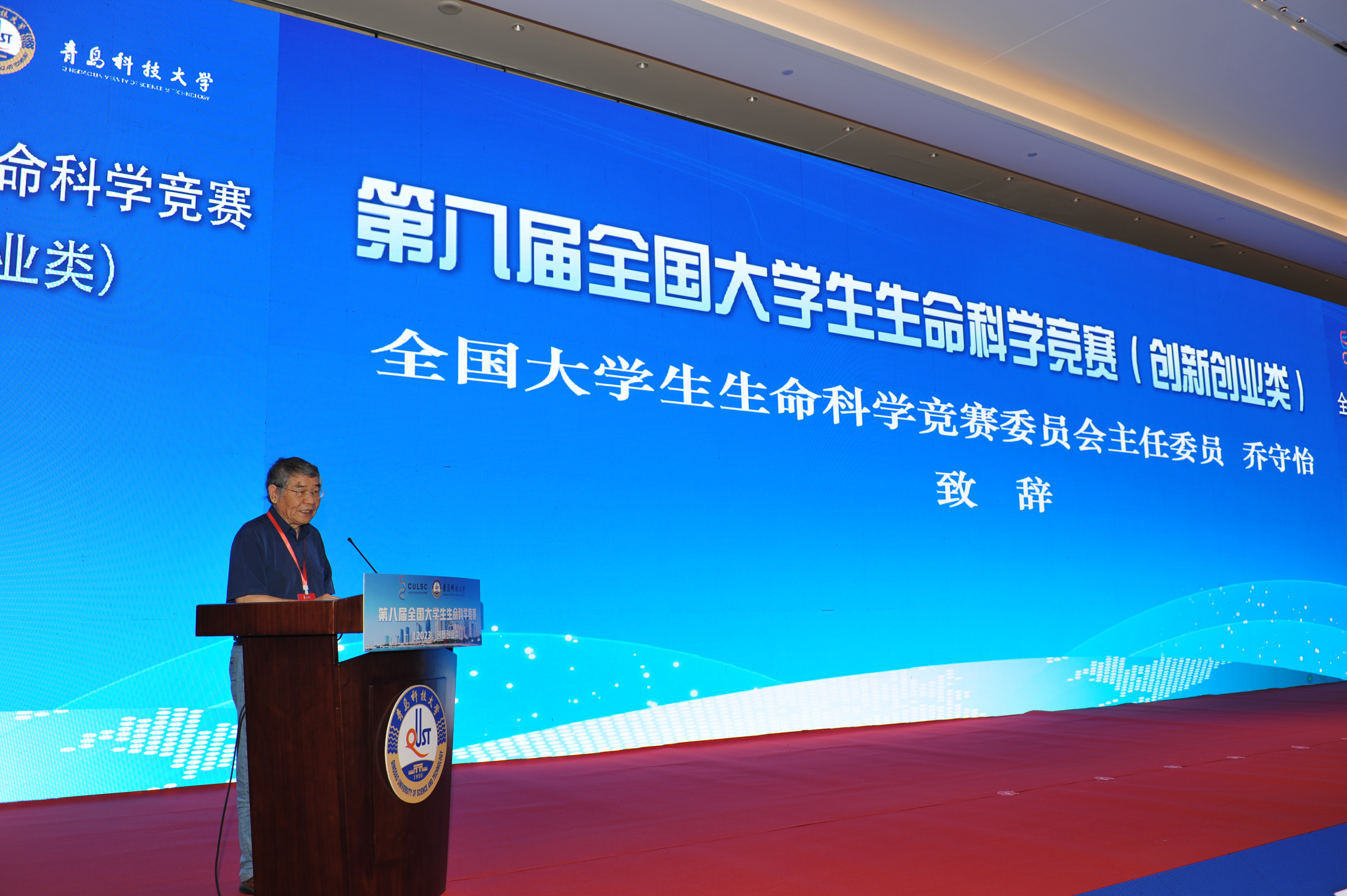 乔守怡代表主办单位致辞,详细介绍了历届竞赛的参赛和获奖情况。他表示,大赛旨在为全国高校生命科学相关专业在校大学生搭建创新创业实践活动的交流与展示平台,激发大学生创新创业热情,厚植创新创业文化,增强创新创业意识,弘扬创新创业精神,促进高校大学生创新创业教育蓬勃开展,培养和发现科技创新创业优秀人才,推动高校创新创业教育质量的提高。