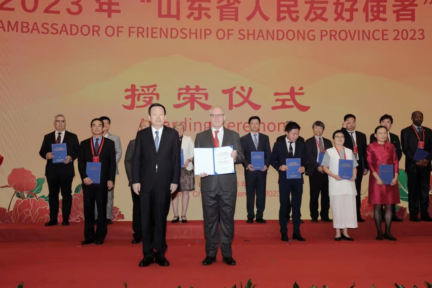 “山东省人民友好使者”称号由山东省人民对外友好协会设立,是授予长期坚持对华友好、积极促进山东与世界的交流与合作,在山东省与世界各国人民的友好交流与合作中发挥了重要作用,并在山东和本国有较高声誉或影响的外国友人。